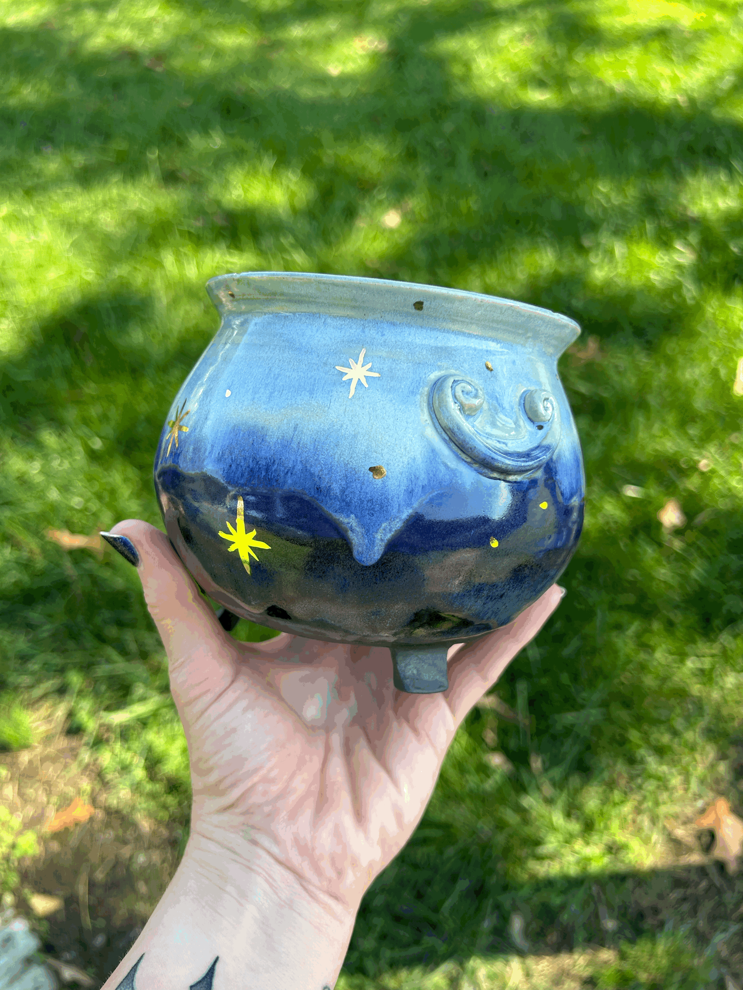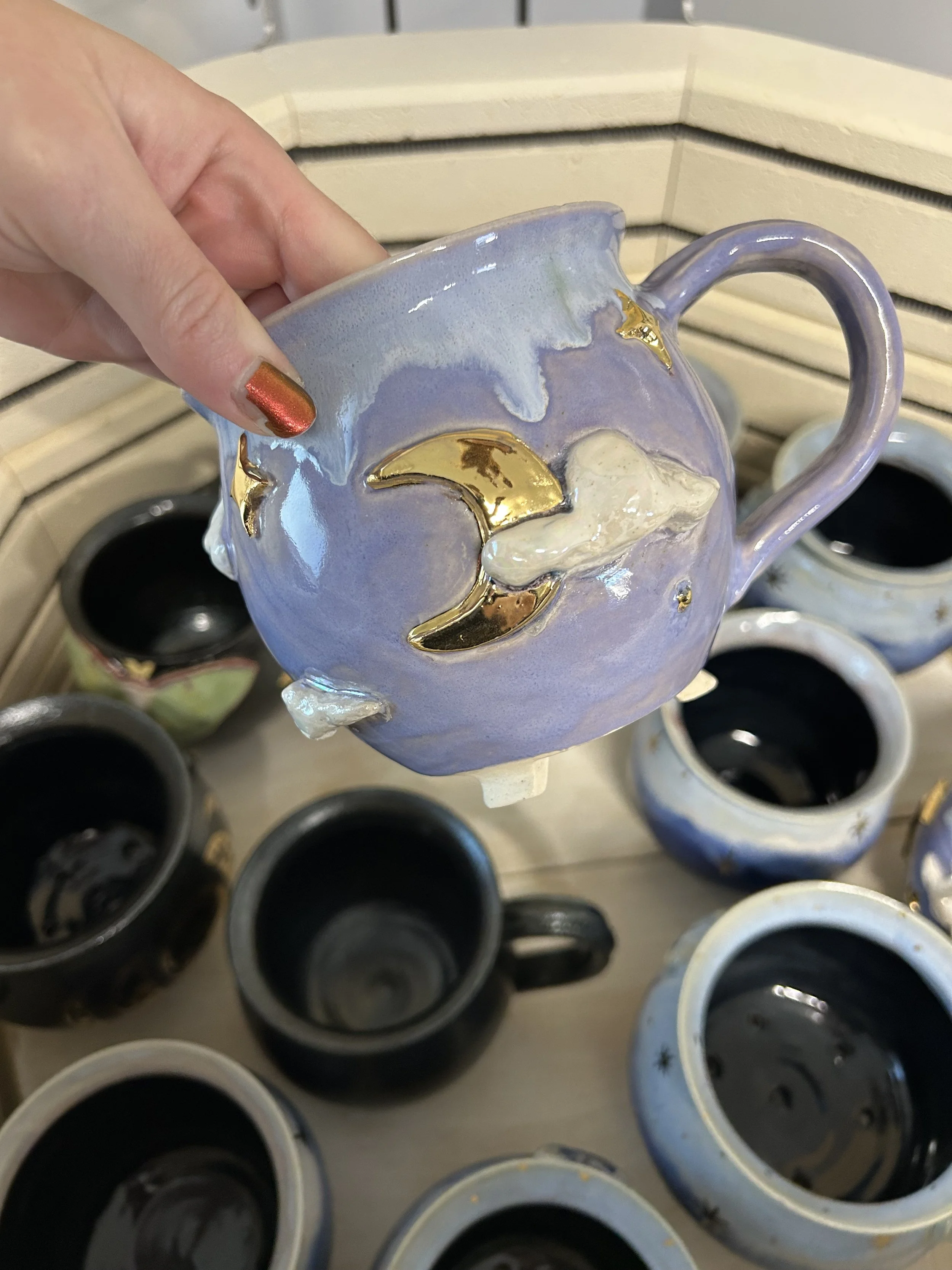 Welcome to Cauldron & Kiln, a woman-owned small business where we make magic out of mud. Each piece is handcrafted and inspired by enchanted forests, Celtic folklore, and moonlit skies. Whether you are sipping morning tea or brewing a potion, each piece is made to bring a touch of whimsy, sparkle, and enchantment to your daily rituals.